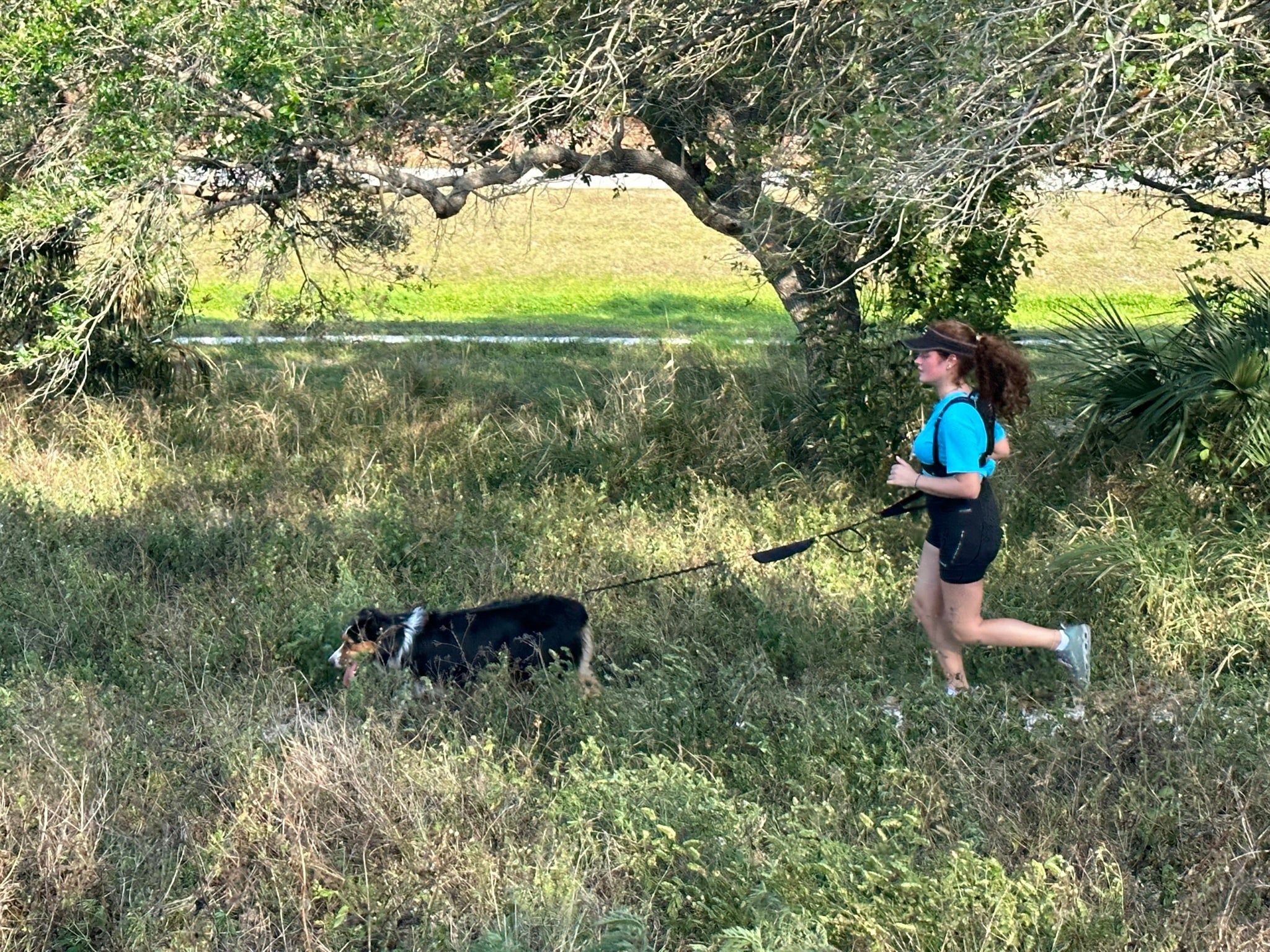 TIP: the handle on the leash is directly in front of you and easily reached should you need to handle your dog.