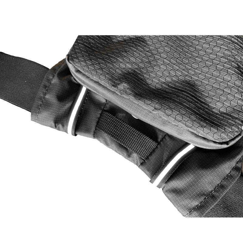 Front and back safety reflective bands as well as silver reflective logos for your night adventures. See and be seen!